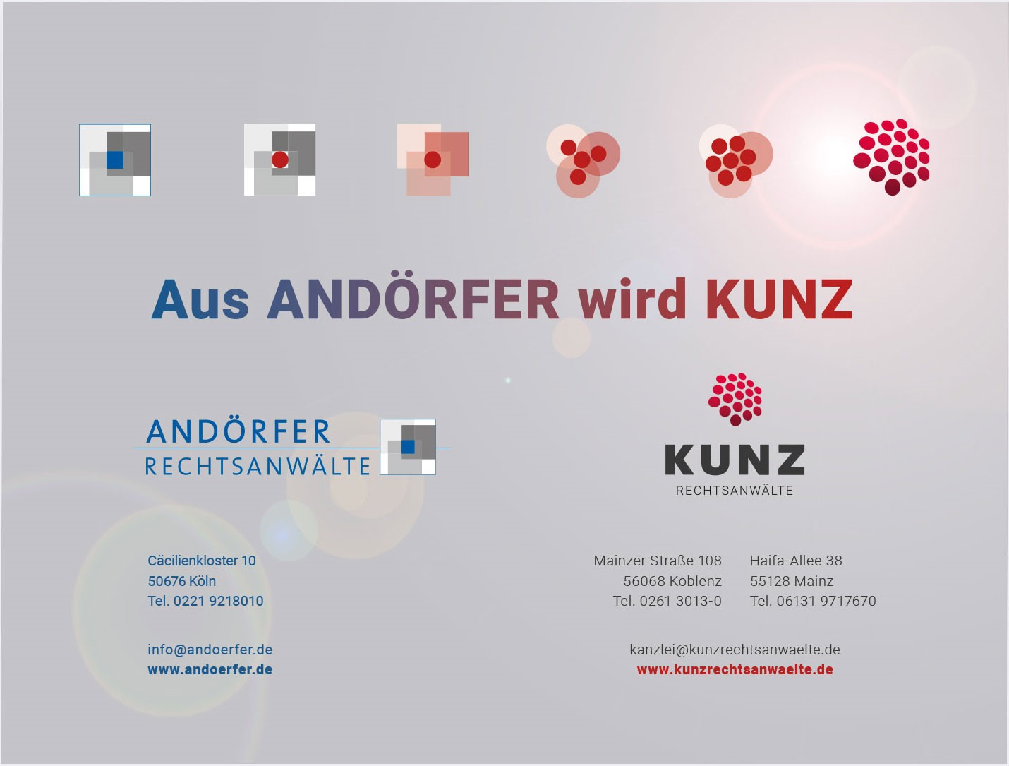 Wir freuen uns sehr, mitteilen zu können, dass wir uns mit Wirkung zum 01.01.2020 mit der KUNZ Rechtsanwälte Partnerschaft mbB zusammengeschlossen haben und nunmehr deren Kölner Standort bilden. Ansprechpartner und Kontaktinformationen in Köln bleiben wie gewohnt bestehen.